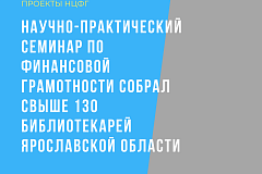 В конце мая прошел цикл научно-практических семинаров «Финансовая грамотность в информационно-библиотечной среде» для методистов и библиотекарей 14 регионов России, который собрал 1 600 слушателей. В семинаре приняли участие 130 сотрудников библиотек Ярославской области.