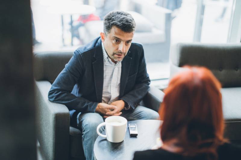— Например, в этом кафе очень шумно. Не представляю, как здесь можно писать.